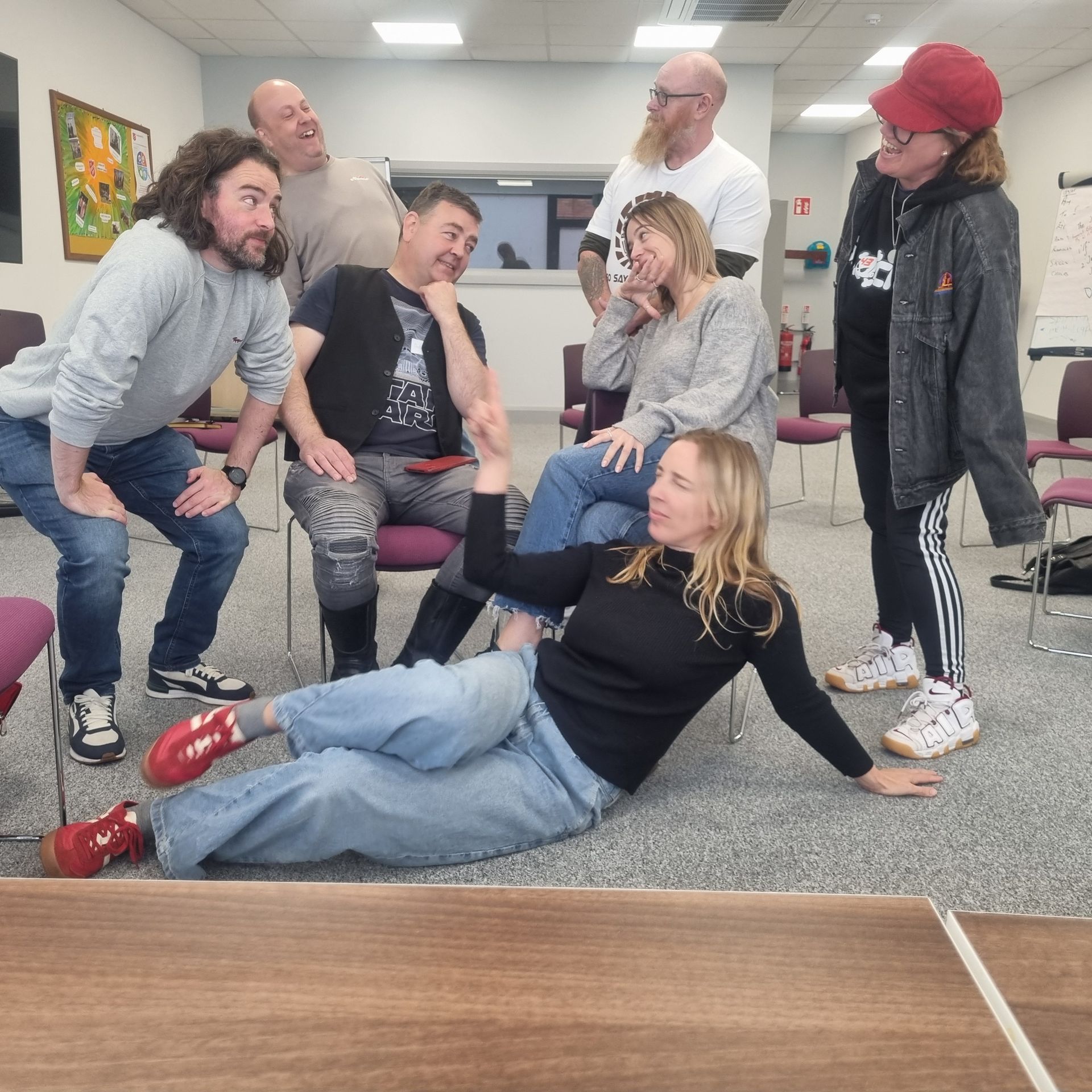 We run 6 week community improv courses that help build creativity and communication skills in a relaxed class starting with very easy exercises and gradually moving onto scene work once the group builds confidence. We also use some theatre of the oppressed techniques if the community group want to put on a community event.